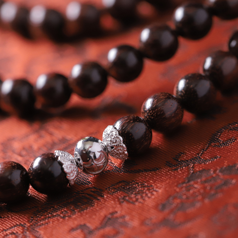 小叶紫檀(含有108个)925银珠镀白金